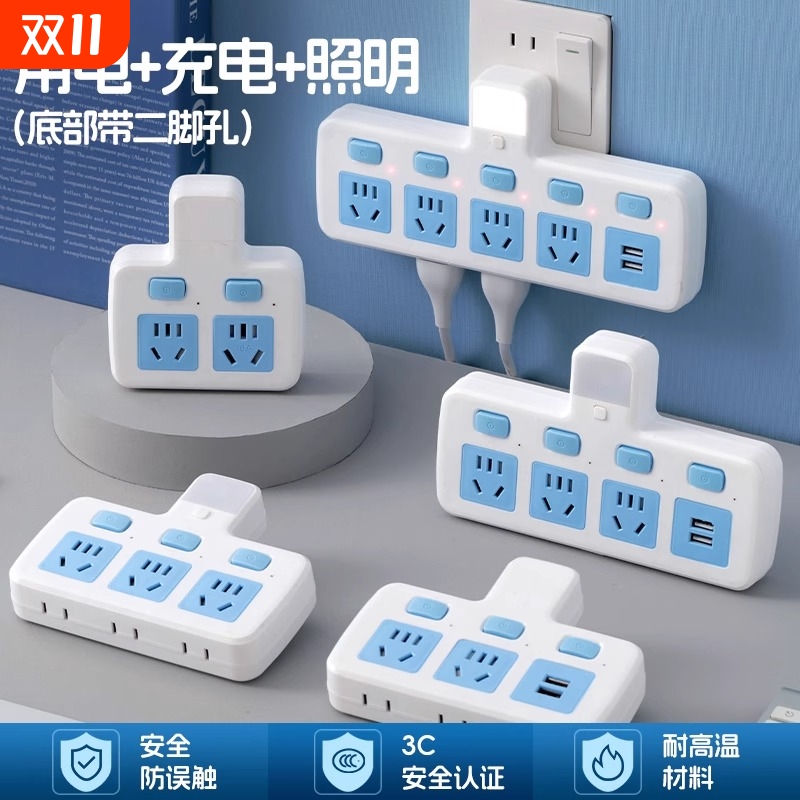 午开关多功能一转排插板插座无线转换器USB多孔多插位大功率充电