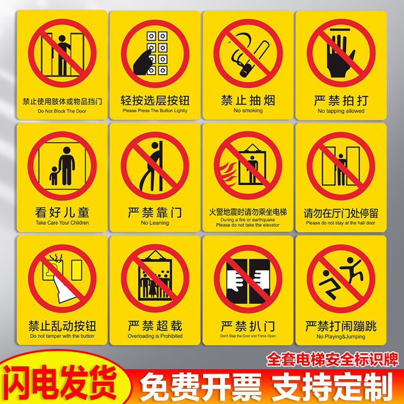请勿在门厅处停留严禁拍打超载扒门靠门禁止抽烟牌子指示牌看好儿童禁