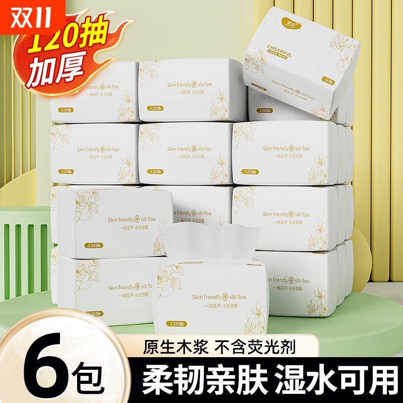 120抽/包柔恣抽纸家用实惠装餐巾纸大包卫生纸原生木浆可湿水原木
