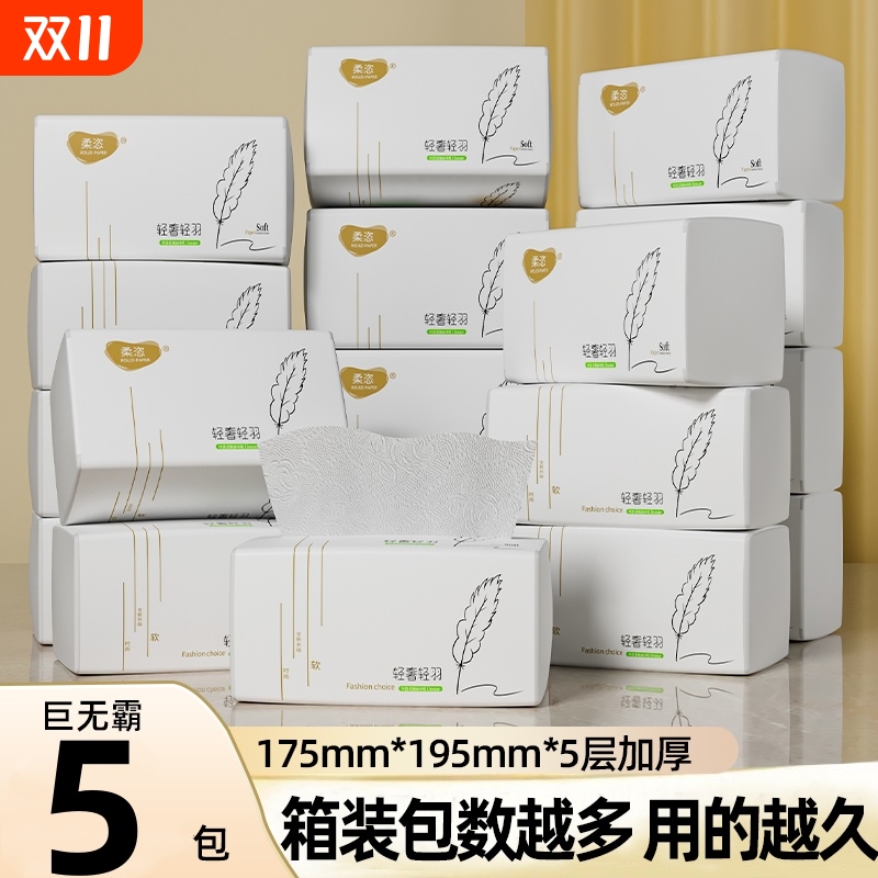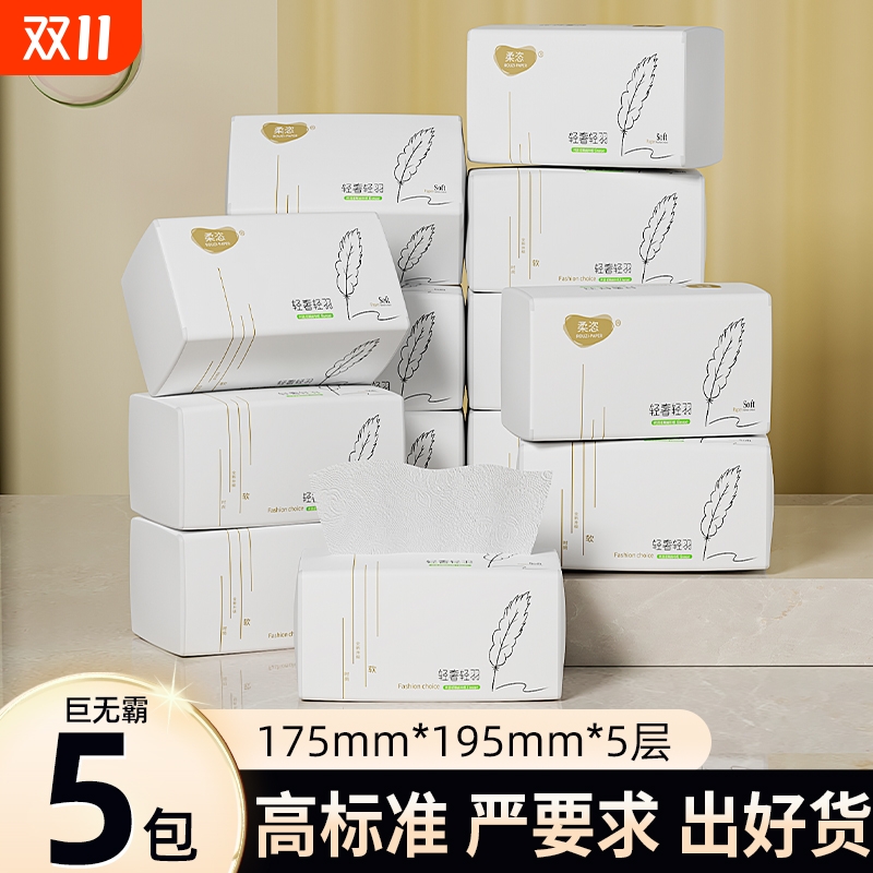 柔恣纸巾抽纸5层加厚大包干湿两用餐巾纸大尺寸卫生纸面巾纸压花