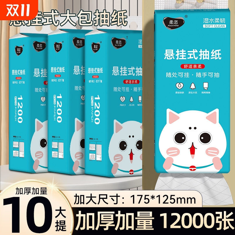 柔恣悬挂式抽纸加厚大包加大家用实惠装餐巾纸卫生纸面巾纸