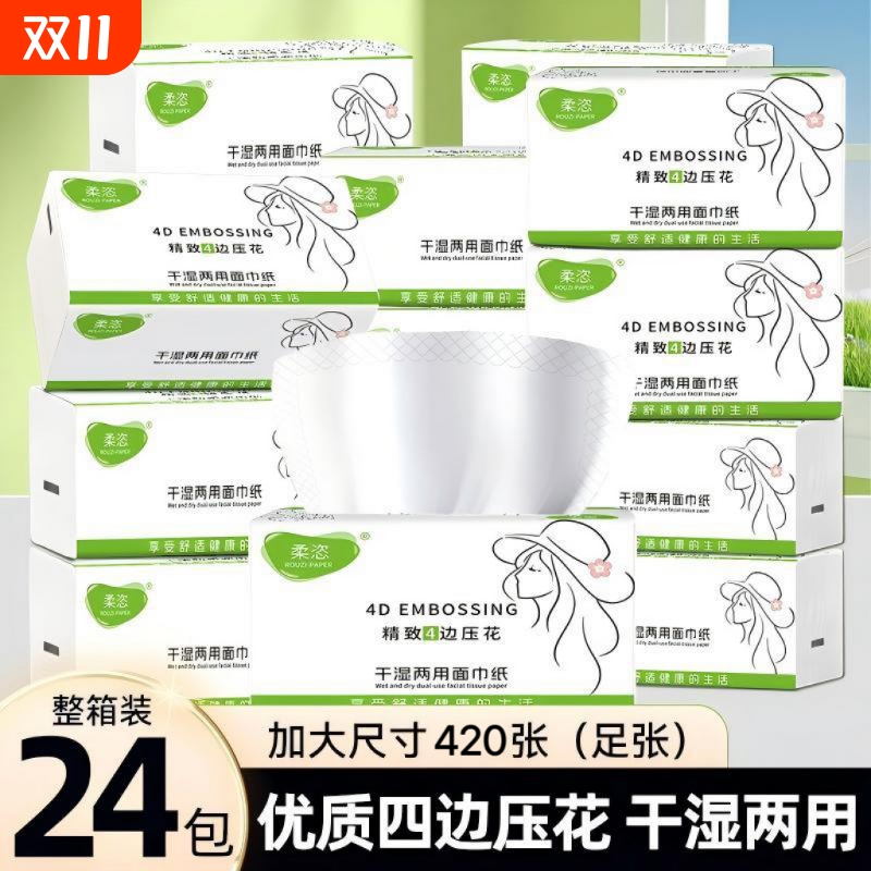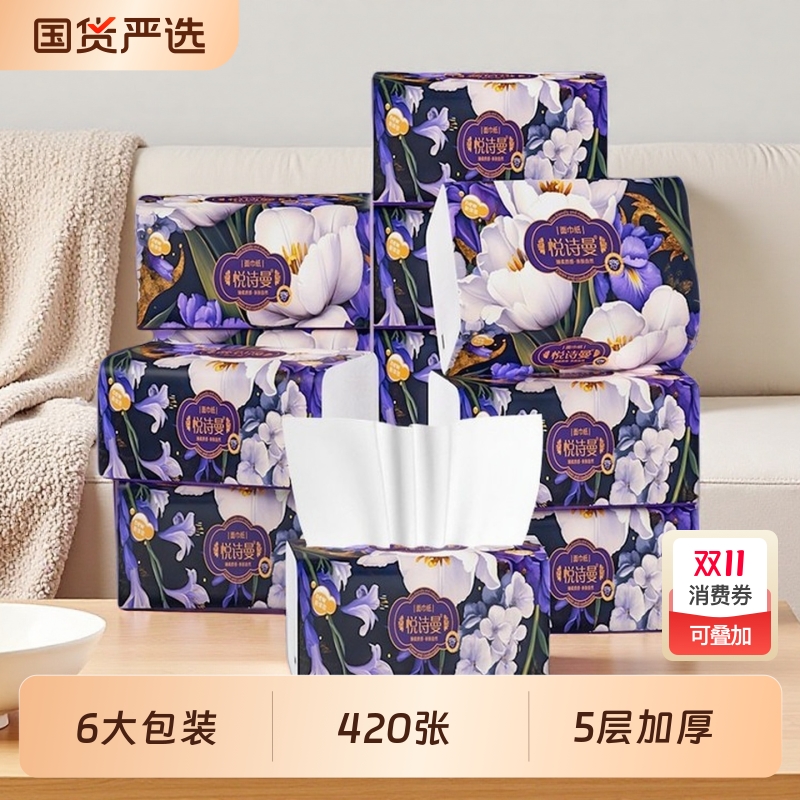 【巨量420张5层】柔恣干湿两用母婴适用宿舍餐巾纸卫生纸抽纸