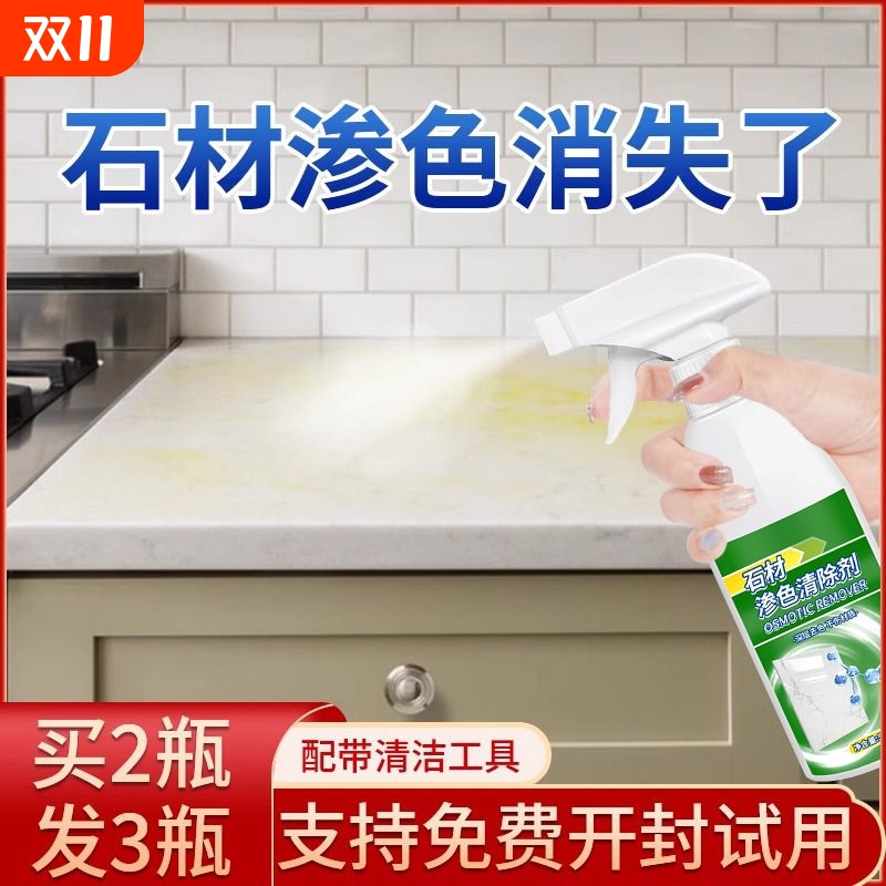 石材渗色清洁剂强效去污石英石餐桌大理石台面清洗去黄污地砖抛光