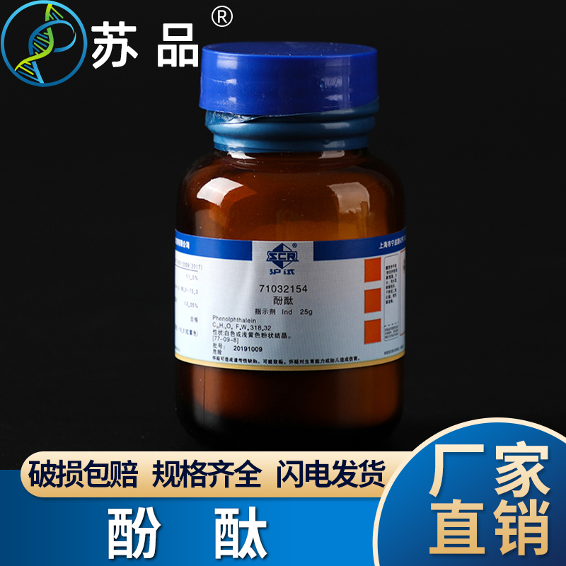 国药(沪试) 化学试剂 酚酞 Ind25g 白色或粉黄色粉状结晶