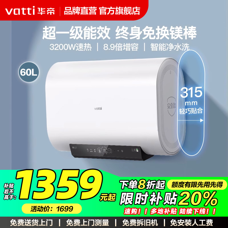 【小扁豆W5Pro】华帝扁桶家用电热水器储水式速热60升-i14
