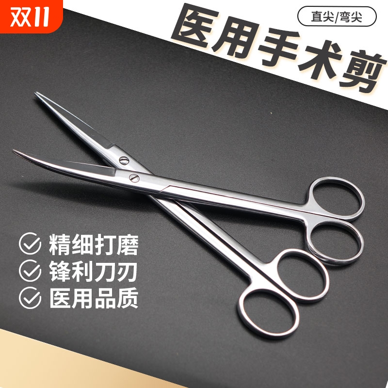 医用不锈钢剪刀直尖直弯头剪刀加厚手术剪眼科组织剪外科拆线剪刀