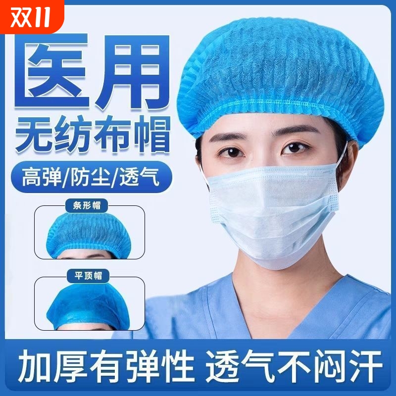 医用一次性帽子透气无纺布美容食品防尘帽头套蓝色医护手术帽条帽