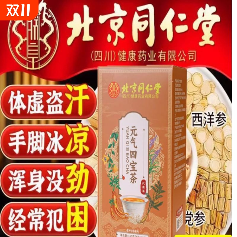 北京同仁堂不打碎元气四宝茶西洋参黄芪麦冬养生体虚气短爱出虚汗