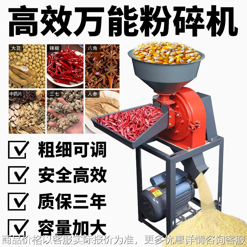 玉米粉碎机五谷杂粮干磨机打碎饲料磨粉机家用220v小型商用