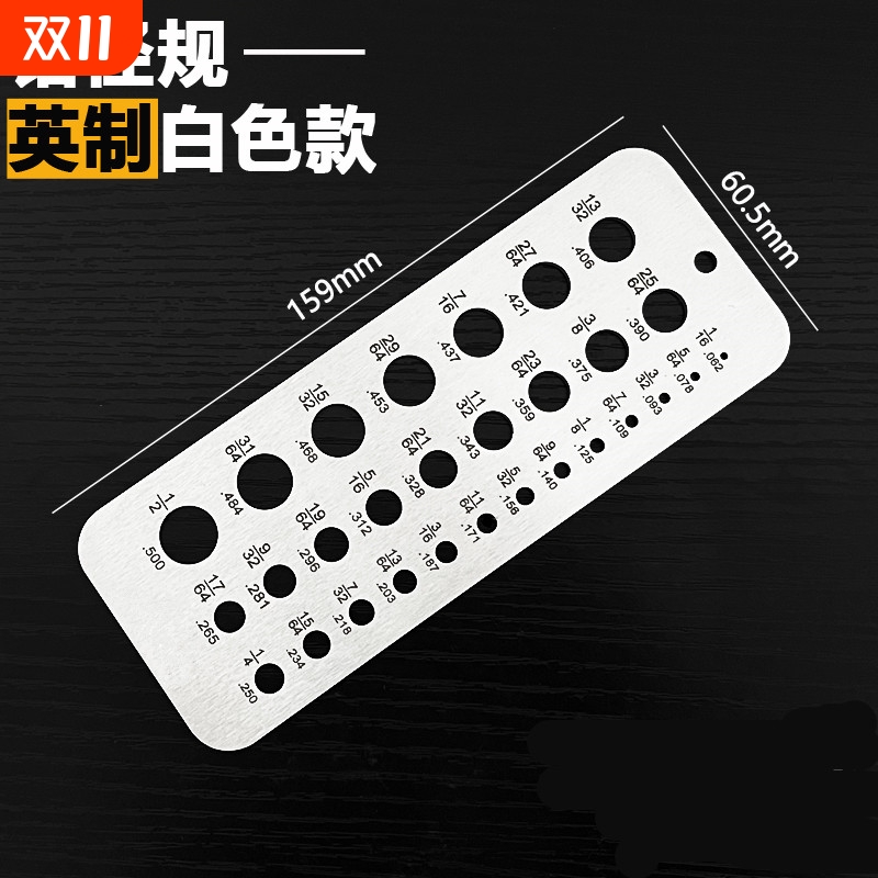 钻径规不锈钢钻头量规测径规29孔钻径规白色黑色直径测量尺寸指数