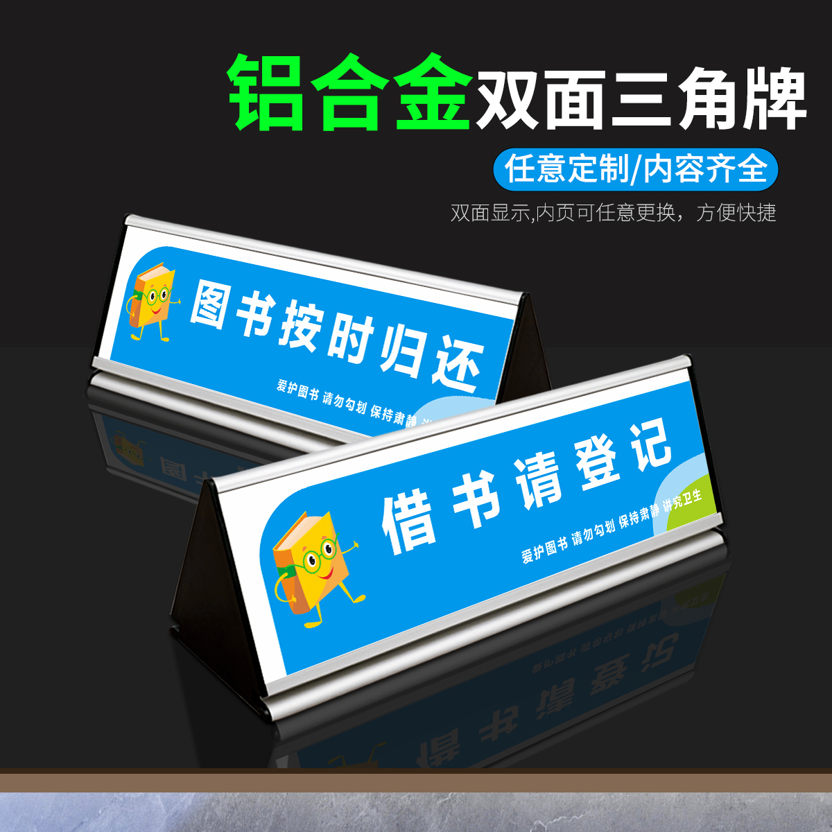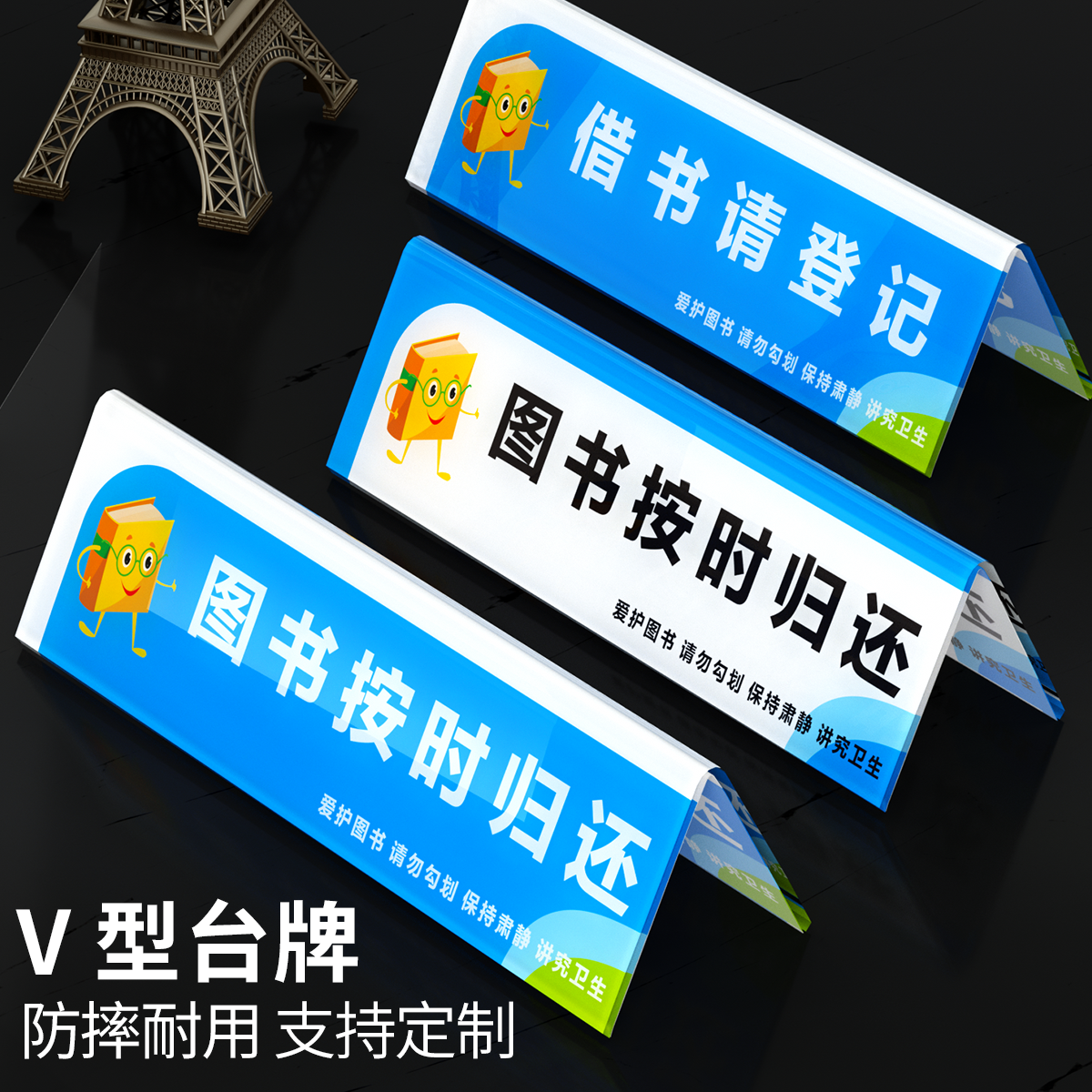 借书请登记亚克力V型双面图书按时归还温馨提示桌牌摆台爱护书本标识