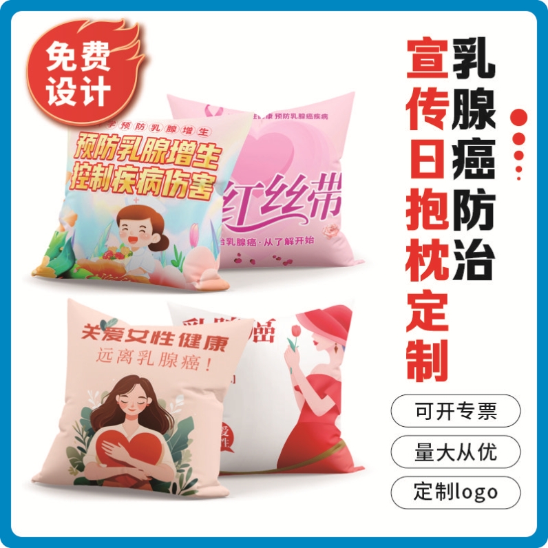 体检中心粉红丝带月呼吁女性按时体检预防乳腺疾病礼品抱枕被定制