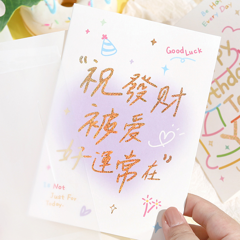 手绘涂鸦风祝福文字烫金折叠贺卡