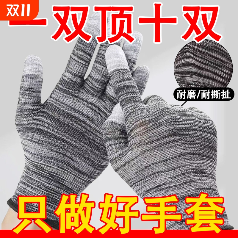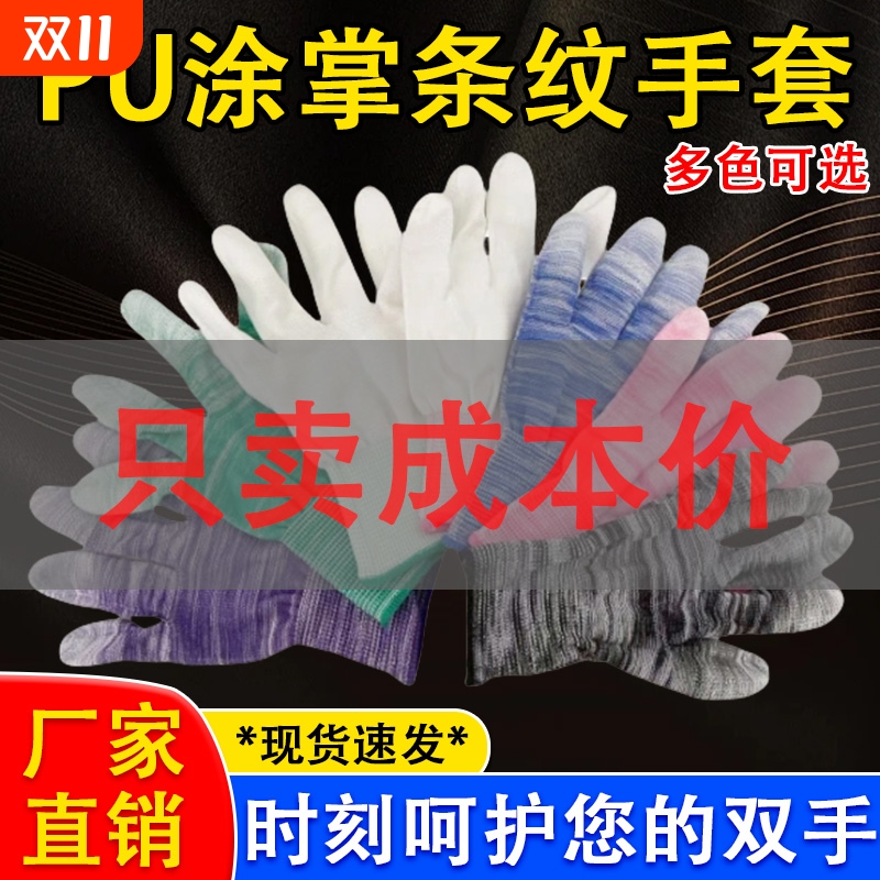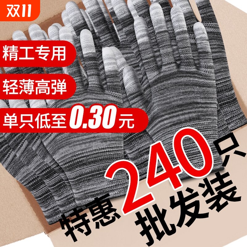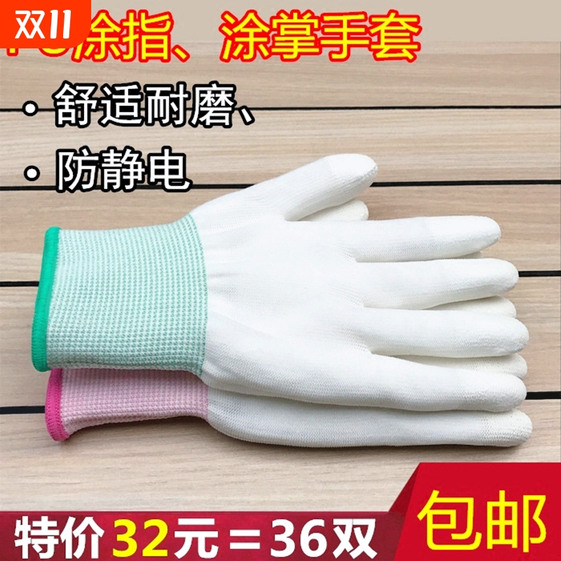 36双薄款尼龙pu涂指手套涂掌防静电劳保手套耐磨工作耐用手指作业