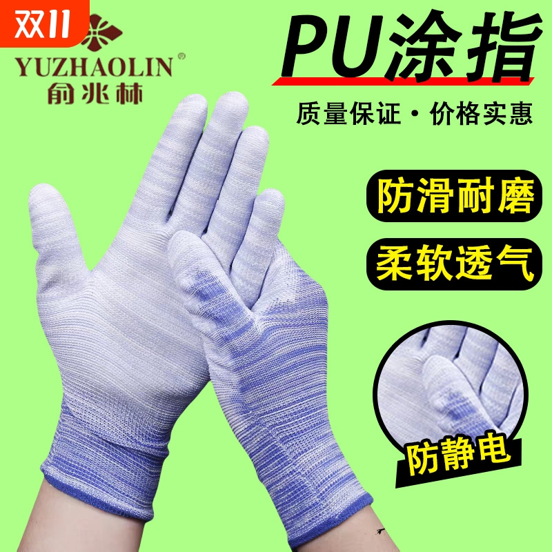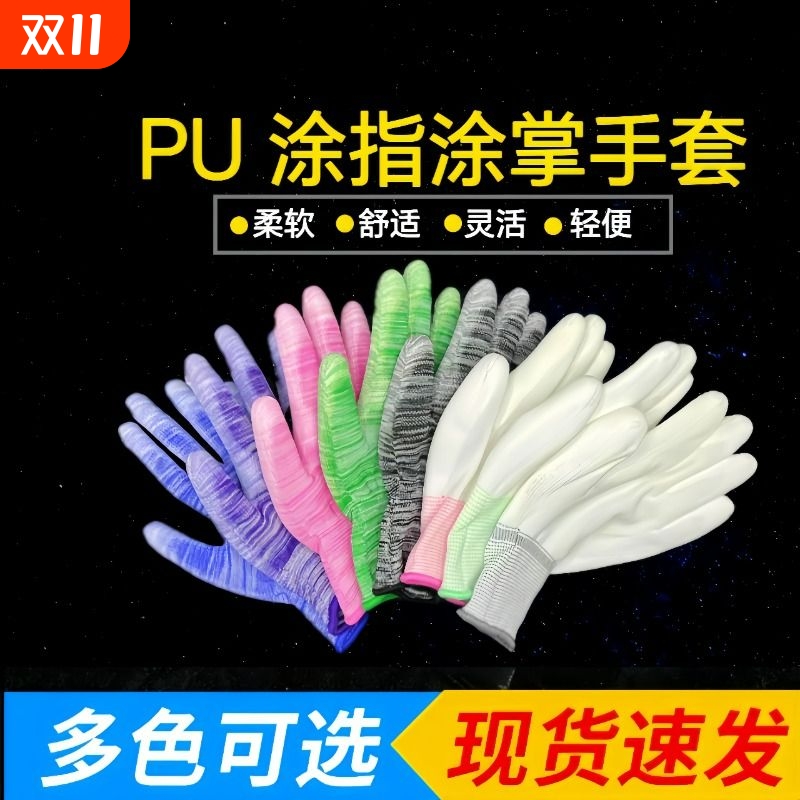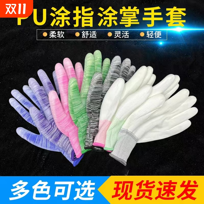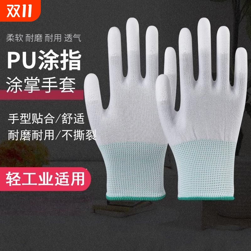 PU浸涂指涂掌尼龙手套劳保工作耐磨防滑干活打包薄款胶皮手指涂胶