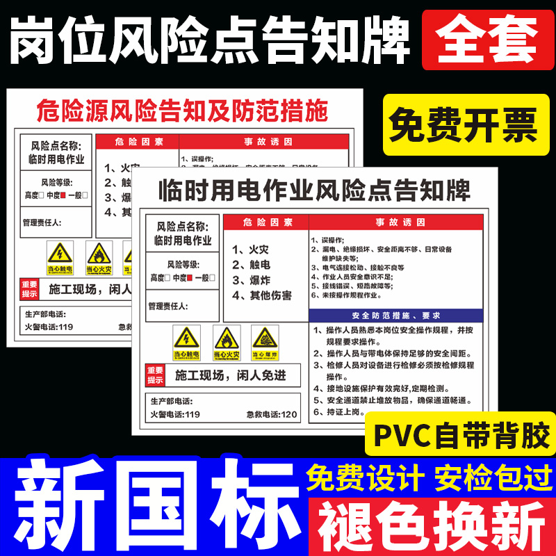 临时用电作业风险点告知牌车间有限空间配电室仓库空压机机床行车岗位