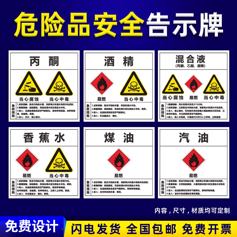 现货速发危险品安全周知卡告示牌丙酮酒精香蕉水异丙醇急救措施标