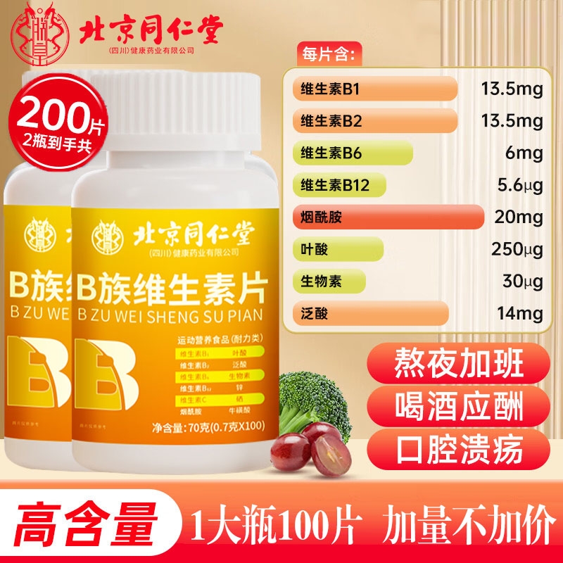北京同仁堂复合维生素B族片成人男女b1b2b6b12代谢营养保健