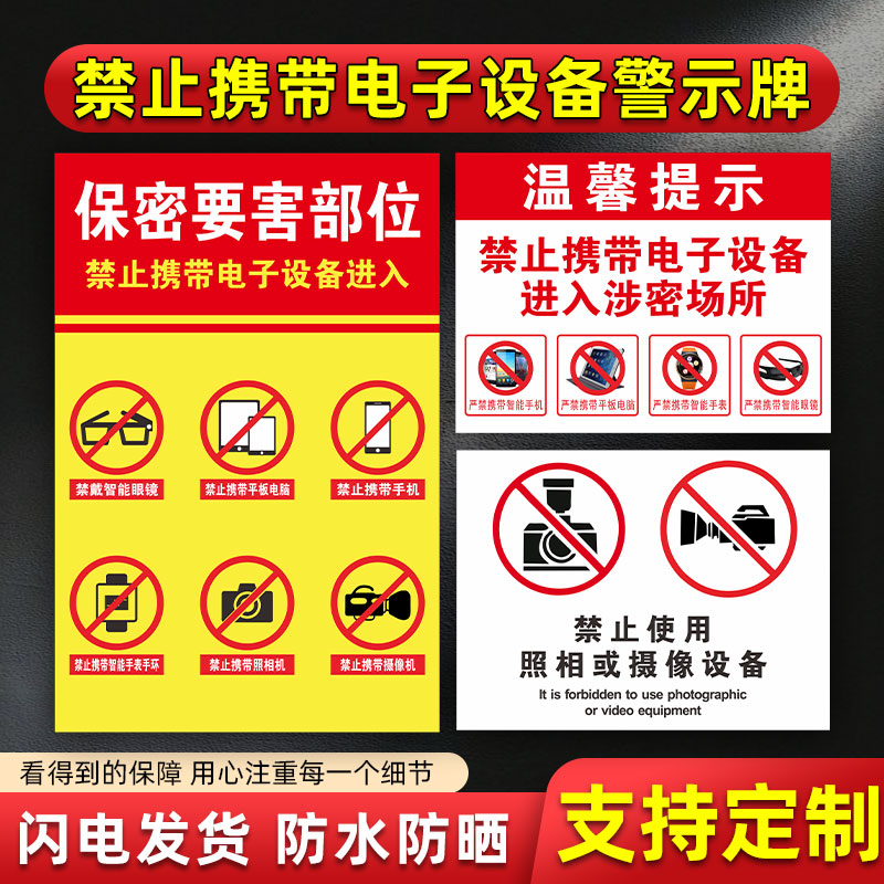禁止携带电子设备警示牌保密部位涉密场所严禁带入 禁止拍照摄影录像