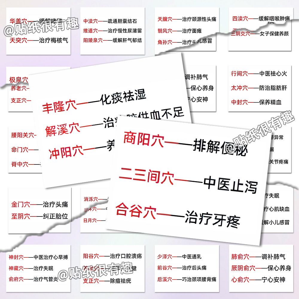 160张特效穴位知识贴纸学习中医经络疏通DIY手账素材装饰墙面防