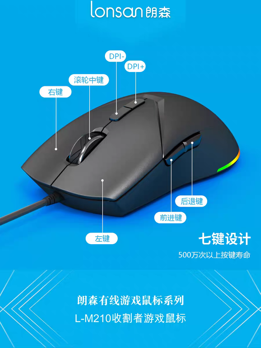 朗朗森LM-210收割者 办公学习游戏有线鼠标USB口 七彩呼吸