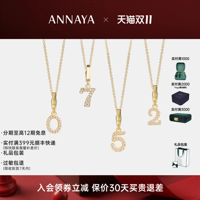 Annaya数字项链吊坠可拆卸小众设计高级感锁骨链情人节礼物送女