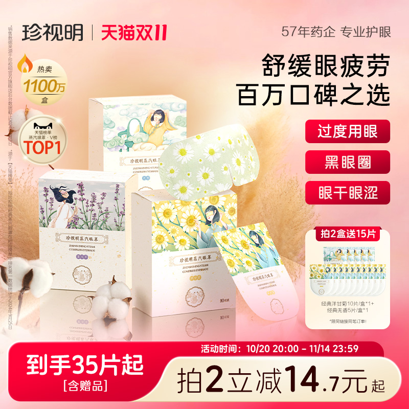 【98元任选3盒】珍视明蒸汽眼罩热敷睡眠遮光发热眼罩舒缓眼疲劳