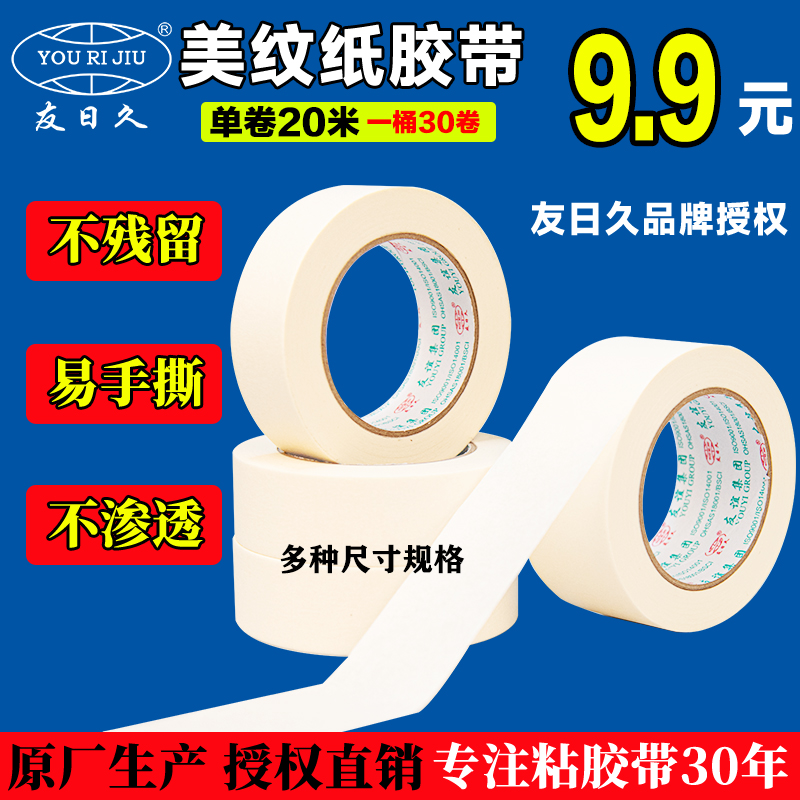 友日久7388和纸胶带整箱50米喷漆遮蔽美缝装修高粘分色美纹纸包