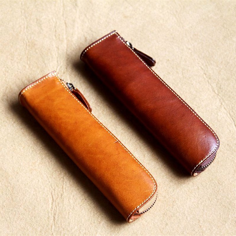 日系植鞣牛皮笔袋简约商务头层牛皮笔袋手工复R古文具袋真皮笔袋