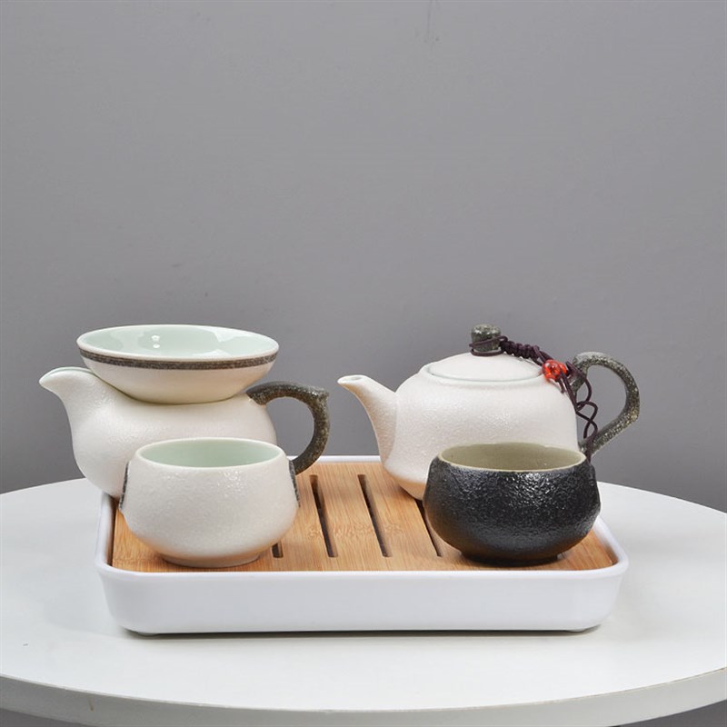 白瓷家用茶具套装小套功夫日式喝茶复H古壶茶杯陶瓷小茶台茶盘整