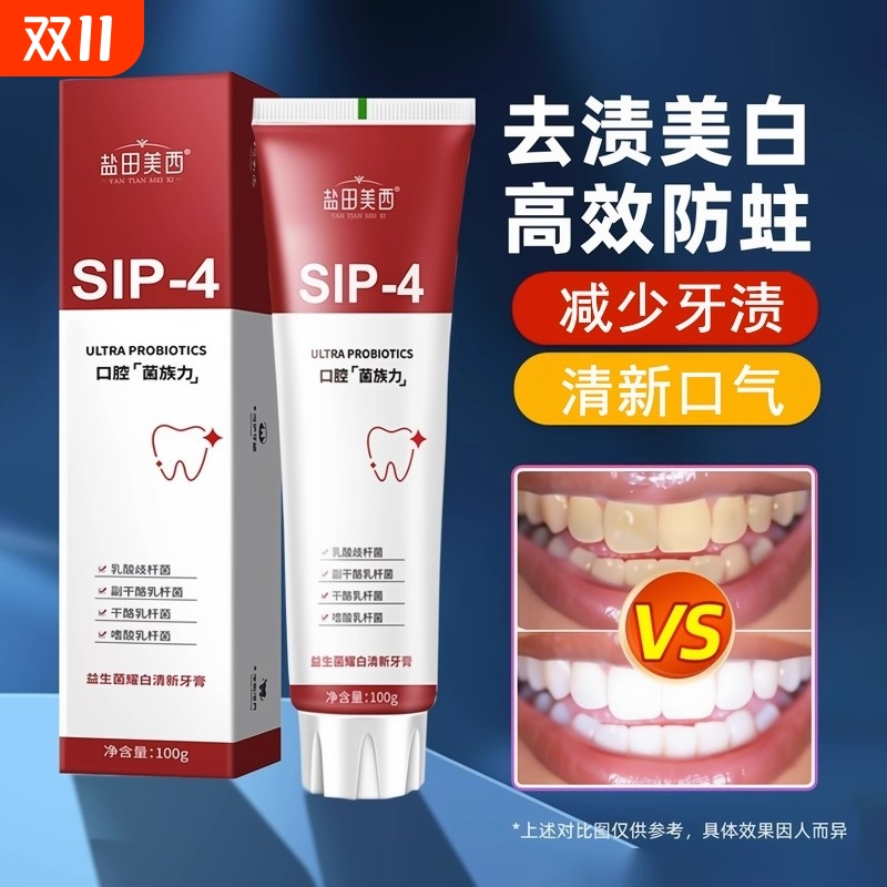 防蛀益生菌耀白亮齿牙膏去牙黄牙烟渍结石清新口气长效抑菌早晚用