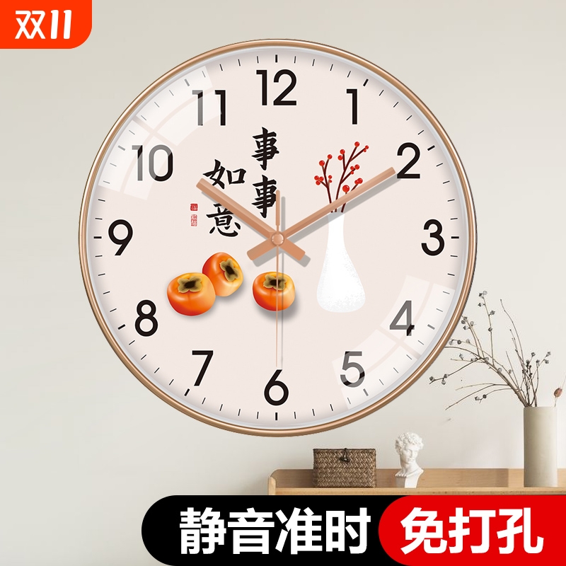 钟表事事如意时钟挂墙装饰家用石英钟客厅创意挂钟对时静音大气