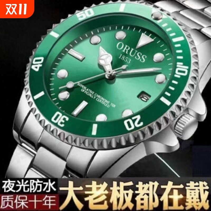 奥瑞时官方正品店高端劳男腕表绿手表非机械石英表全自动水鬼