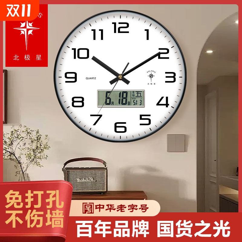 北极星客厅挂钟钟表家用免打孔挂墙时钟自动对时静音卧室大气机芯