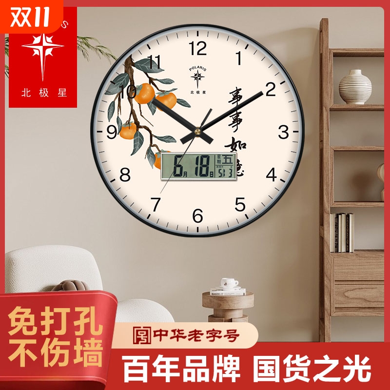 北极星电波钟挂钟对时客厅事事如意创意日历钟表挂墙大气静音卧室