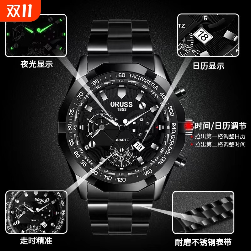 奥瑞时品牌手表批发石英表多功能三眼计时手表防水商务男士手表男