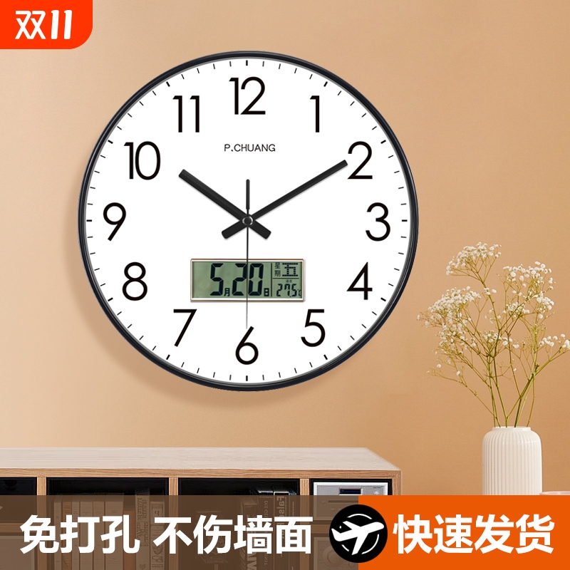 数字挂钟客厅钟表时钟挂墙创意挂表自动对时电波钟免打孔静音大气