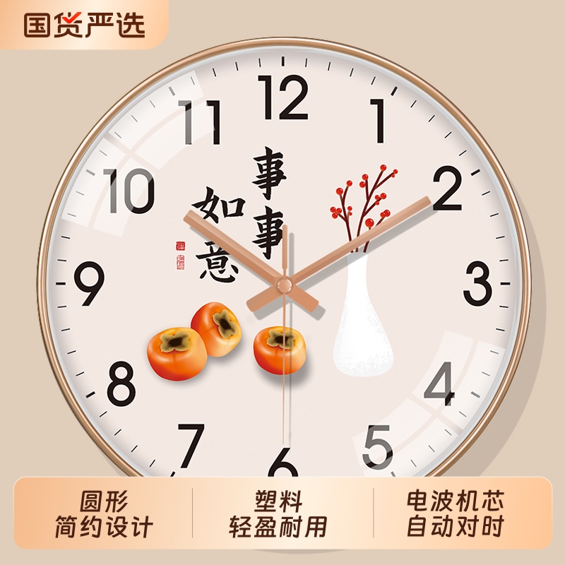 钟表事事如意时钟挂墙装饰家用石英钟客厅创意挂钟对时静音大气