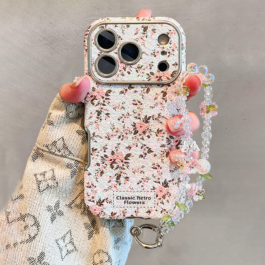 满屏梨花皮质小红书爆款适用苹果17promax手机壳带水晶手链i