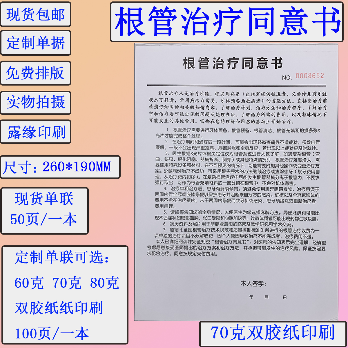 现货根管治疗同意书口腔拔牙种植