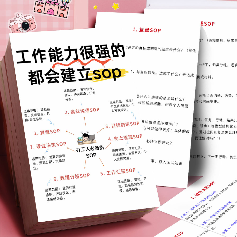 复盘明确目标职场高效执行力效率提升成长管理逻辑思维锻炼贴画
