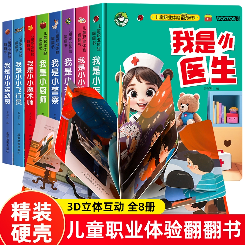 全8册儿童职业情景体验翻翻书0-3-6岁幼儿翻翻玩具书早教启蒙我