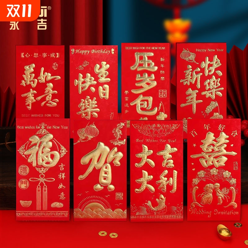 永吉红包2025新款新年快乐过年春节压岁包大吉大利硬纸结婚利是封