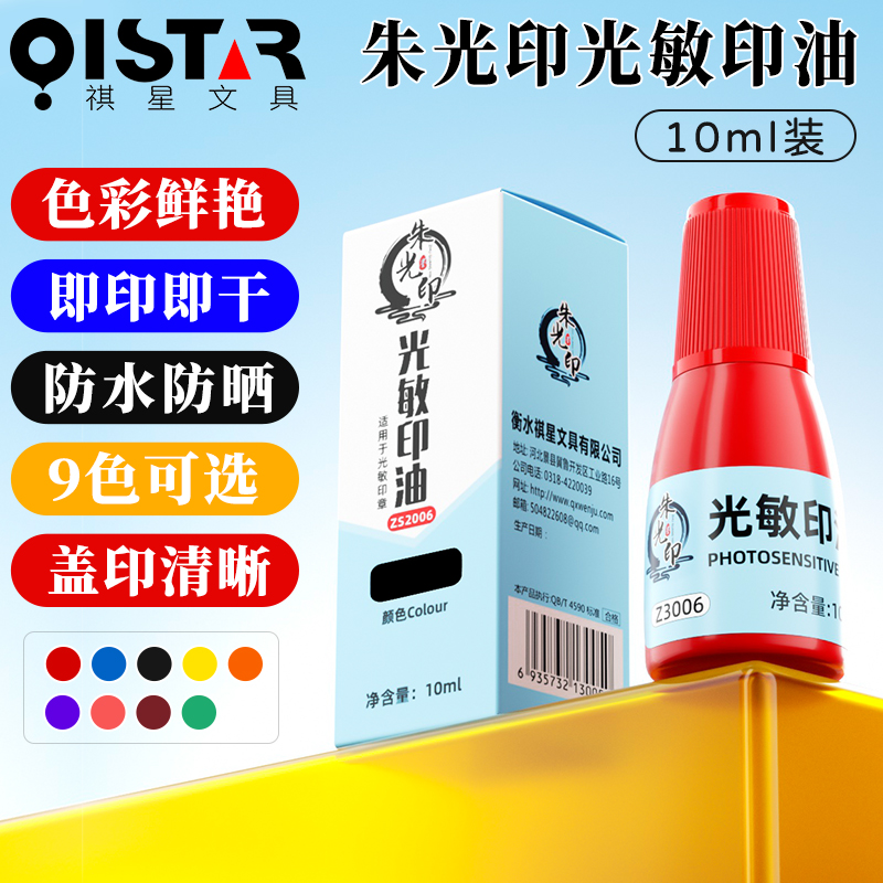 祺星朱光印光敏印油研磨更细腻颜色鲜艳多色彩色行政签名物业办公公章