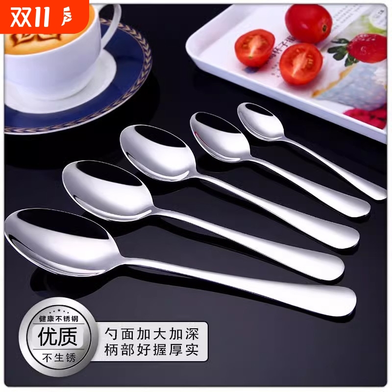 304不锈钢勺子商用酒店西餐具圆汤匙主餐勺甜品精致小咖啡勺茶更