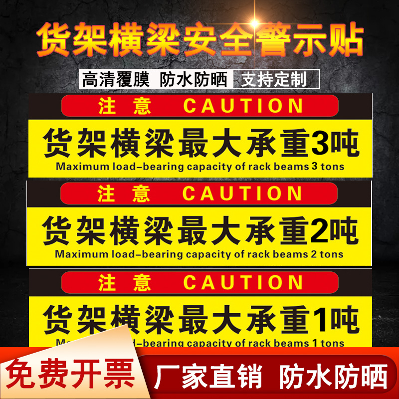 货架横梁承重磁性标识贴加厚软磁提示重量牌最大承重1T2T警示贴仓