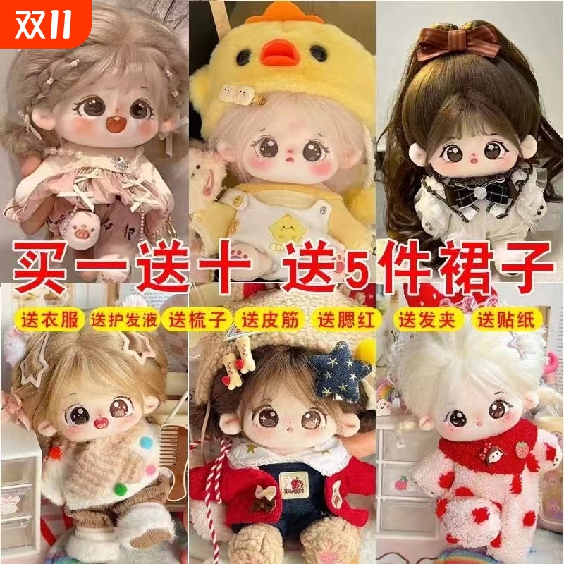 20cm棉花娃娃女正版可爱毛绒公仔换装人形便宜玩偶女生礼物有骨架