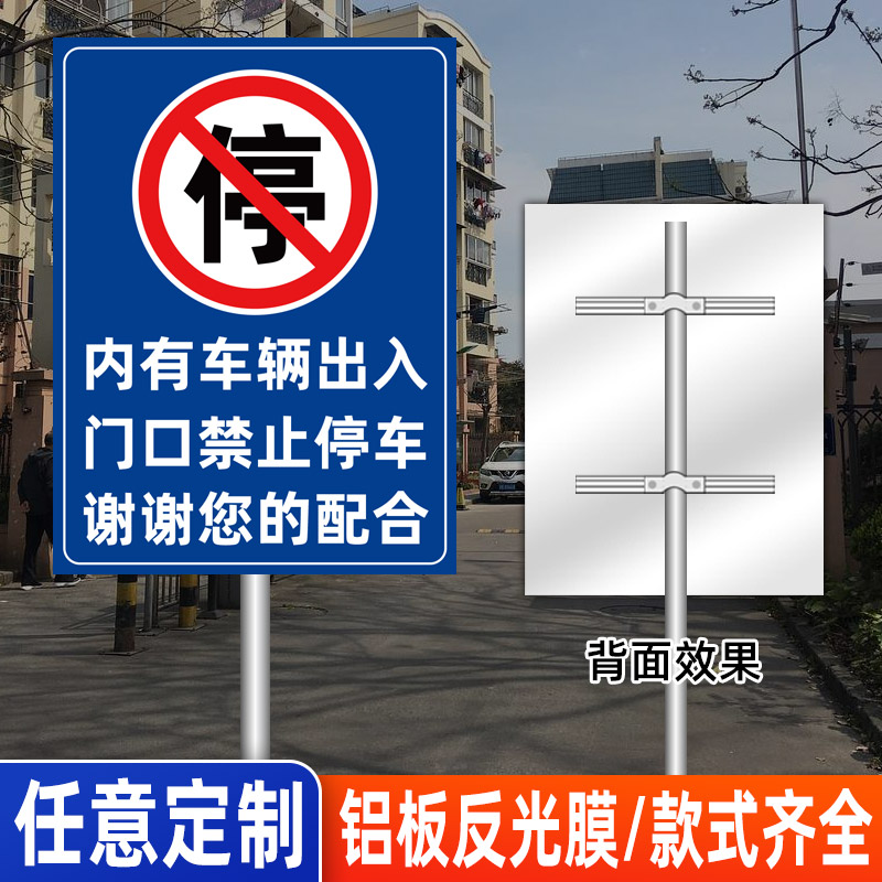 热销内有车辆出入门口禁止停车警示标识提示牌立式铝板反光标牌道