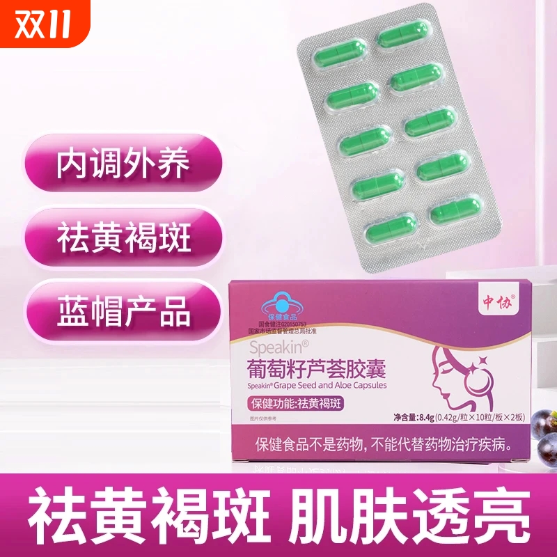 【祛黄褐斑】中协Speakin葡萄籽芦荟胶囊有黄褐斑者官方正品