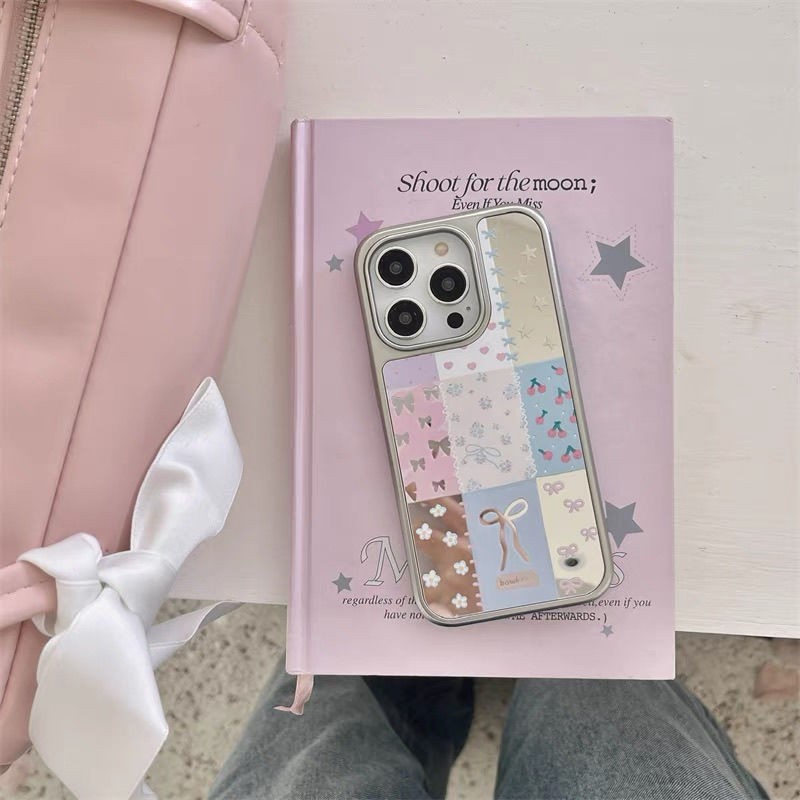 拼接碎花镜面补妆镜子适用苹果16promax手机壳女iPhone